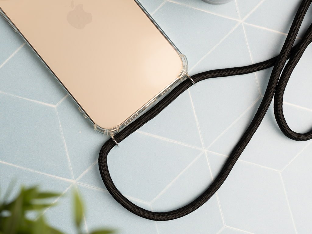 Průhledný gumový obal na iPhone 13 Pro Max se šňůrkou na krk. Poskytuje dokonalou ochranu celému iPhonu. Výstupky po stranách pro snazší ovládání tlačítek. Elegantní design. Příjemný obal do ruky. Vyztužené rohy pro vyšší odolnost.
