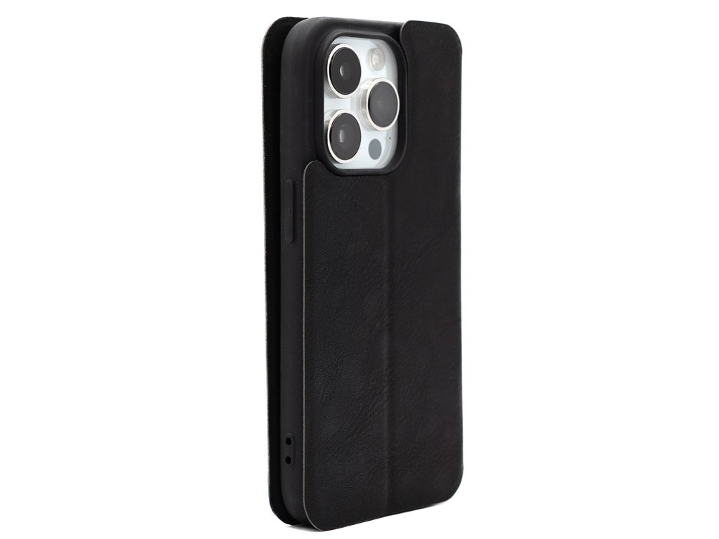 Zavírací ECO TPU kožené pouzdro na iPhone 14 Pro - Zavírací obal typu kniha, který dokonale chrání iPhone před poškozením a zároveň umožňuje uložení kreditních karet. Vyztužení okolo hlavní kamery pomáhá chránit čočky před poškrábáním.