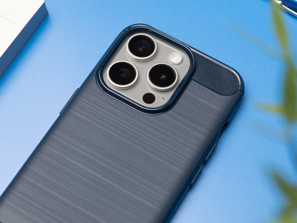 TPU Carbon gumový obal iPhone 15 Pro - Modrý