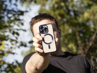 Gumový obal s podporou nabíjení skrz MagSafe. Elegantní zpracování, tenký design. Součástí krytu jsou také ochranná sklíčka na kamery, díky kterým nedochází k poškozením čoček kamery.