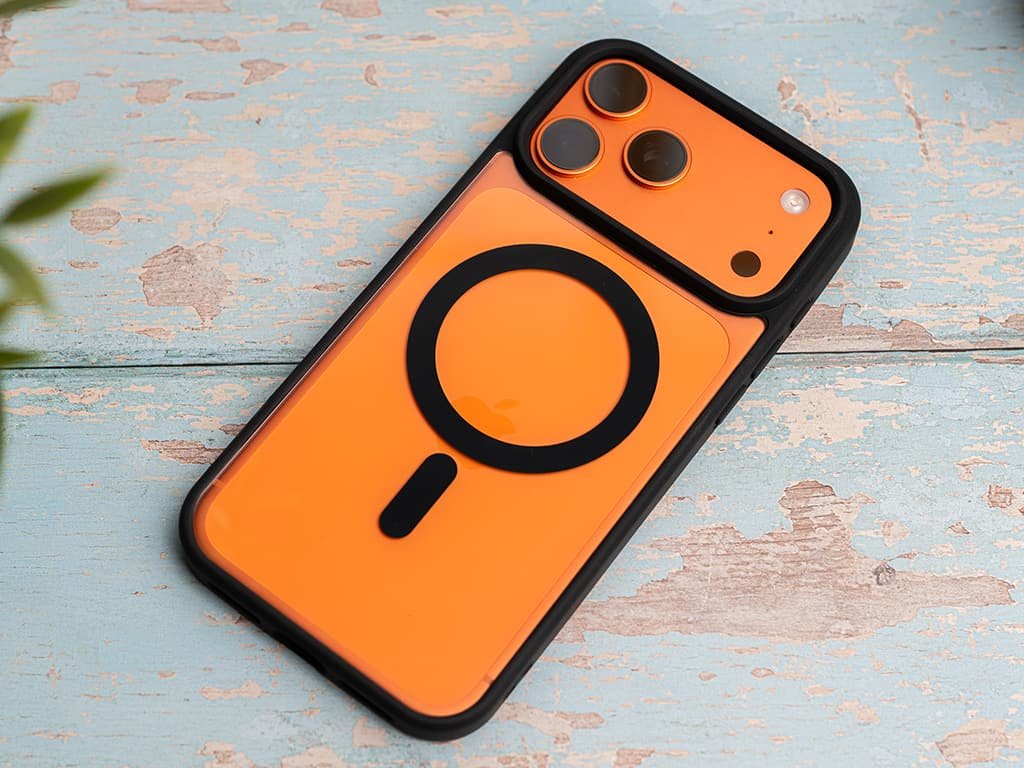 Ochranný kryt s vyztuženými hranami a podporou magsafe technologie. Svým designem padne do oka spíše mužům. Samozřejmostí je i plná kompatibilita se všemi tvrzenými skly.