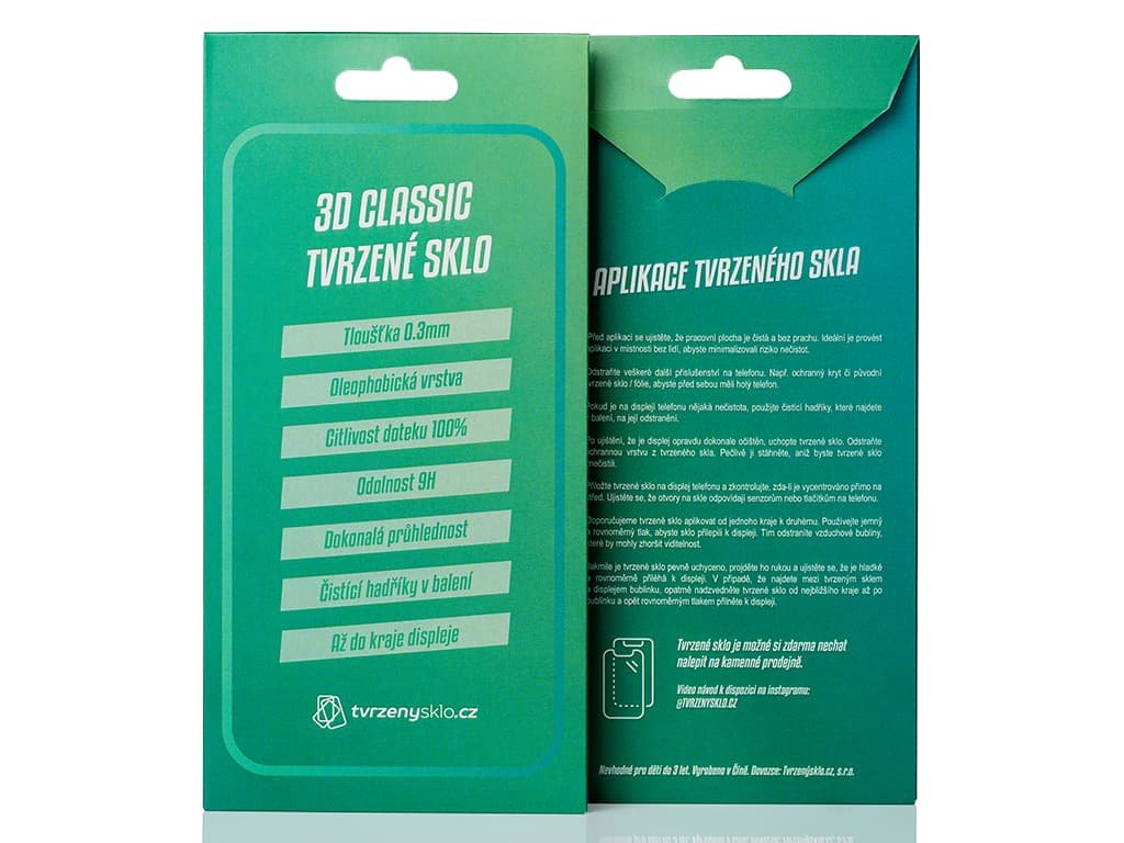Tvrzené sklo 3D od společnosti chrání kompletně celý povrch displeje proti poškození. Zasahuje i do stran, kam klasické tvrzené sklo nedosáhne. Je tenké pouze 0,33 milimetru, takže příliš nenavyšuje hmotnost telefonu. Velkou výhodou je vysoká odolnost, tvrzené sklo dosahuje tvrdosti 9H. Chrání displej proti poškrábání, ale i prasknutí při menších nárazech a pádech. Nemusíte se obávat zhoršení viditelnosti displeje, protože se jedná o 100% průhledné ochranné sklo. Povrch skla je potažený speciální oleophobní úpravou, která odpuzuje mastnotu.