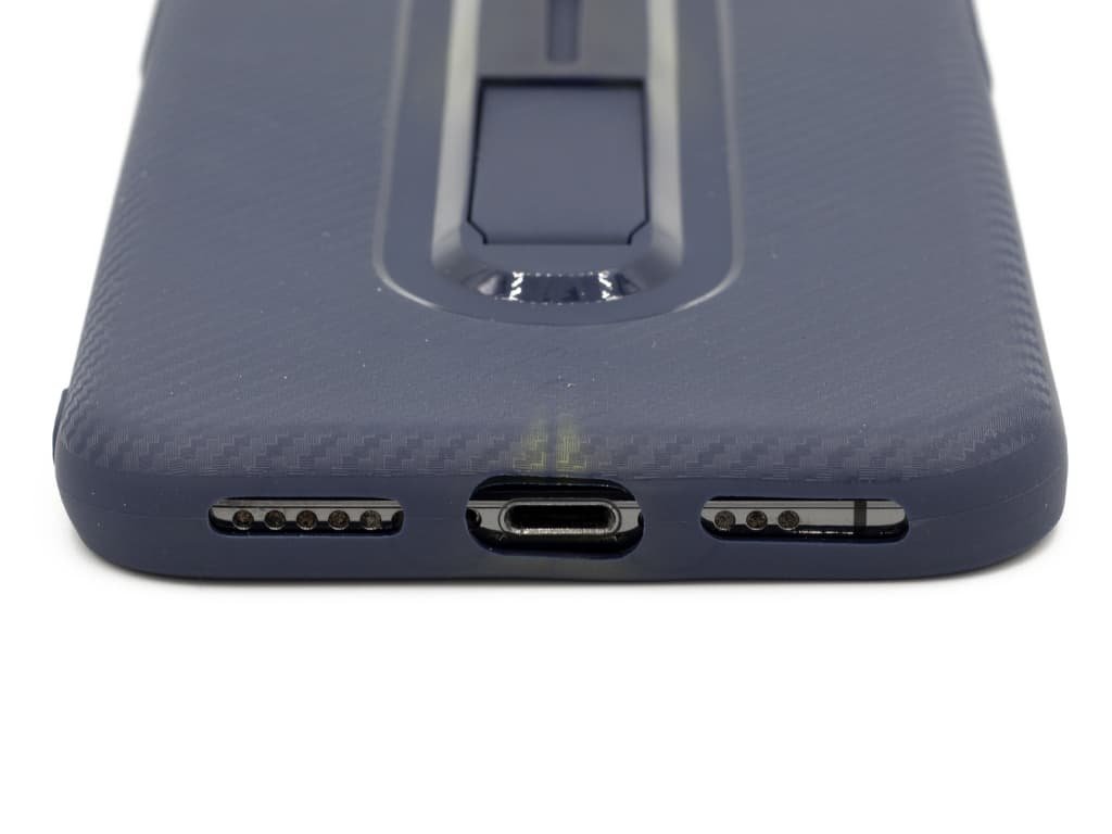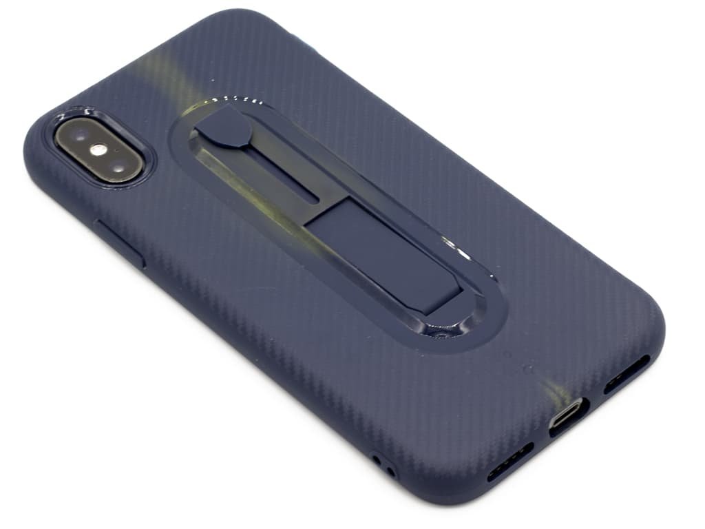 Gumový obal se žlutým pruhem a držákem na prst na iPhone X,XS - Modrý
