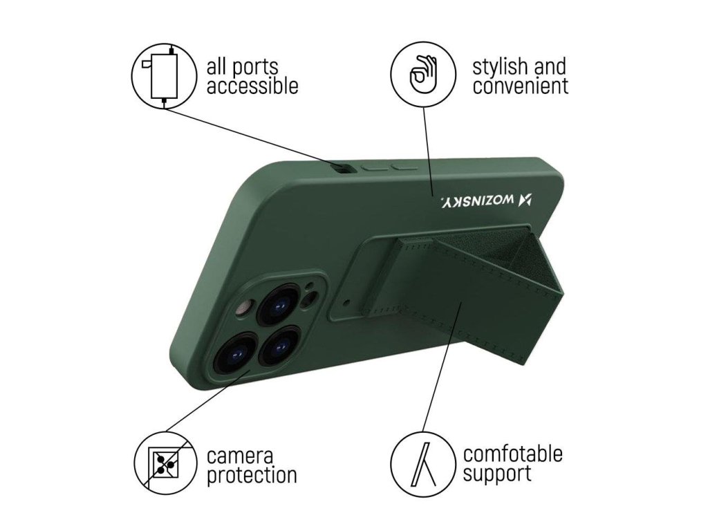 Wozinsky Kickstand je řada multifunkčních silikonových obalů, které nabízí elegantní vzhled a skvěle padnou do ruky. Jejich největší výhodu představuje integrovaný stojánek s magnetem, jenž lze využít ke sledování filmů a videí ve vertikální i horizontální poloze. Navíc se může proměnit v úchyt na ruku a ve složeném stavu poslouží ke spojení zařízení s magnetickým držákem do auta.